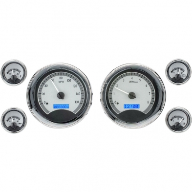 The Dakota Digital VHX-1024 larger instruments measures 5.4" overall (5” Cutout) and the four smaller gauges at 2.3" (2.05” Cutout), this is one distinctive choice. Chromed billet aluminum housings and bezels round out the package.