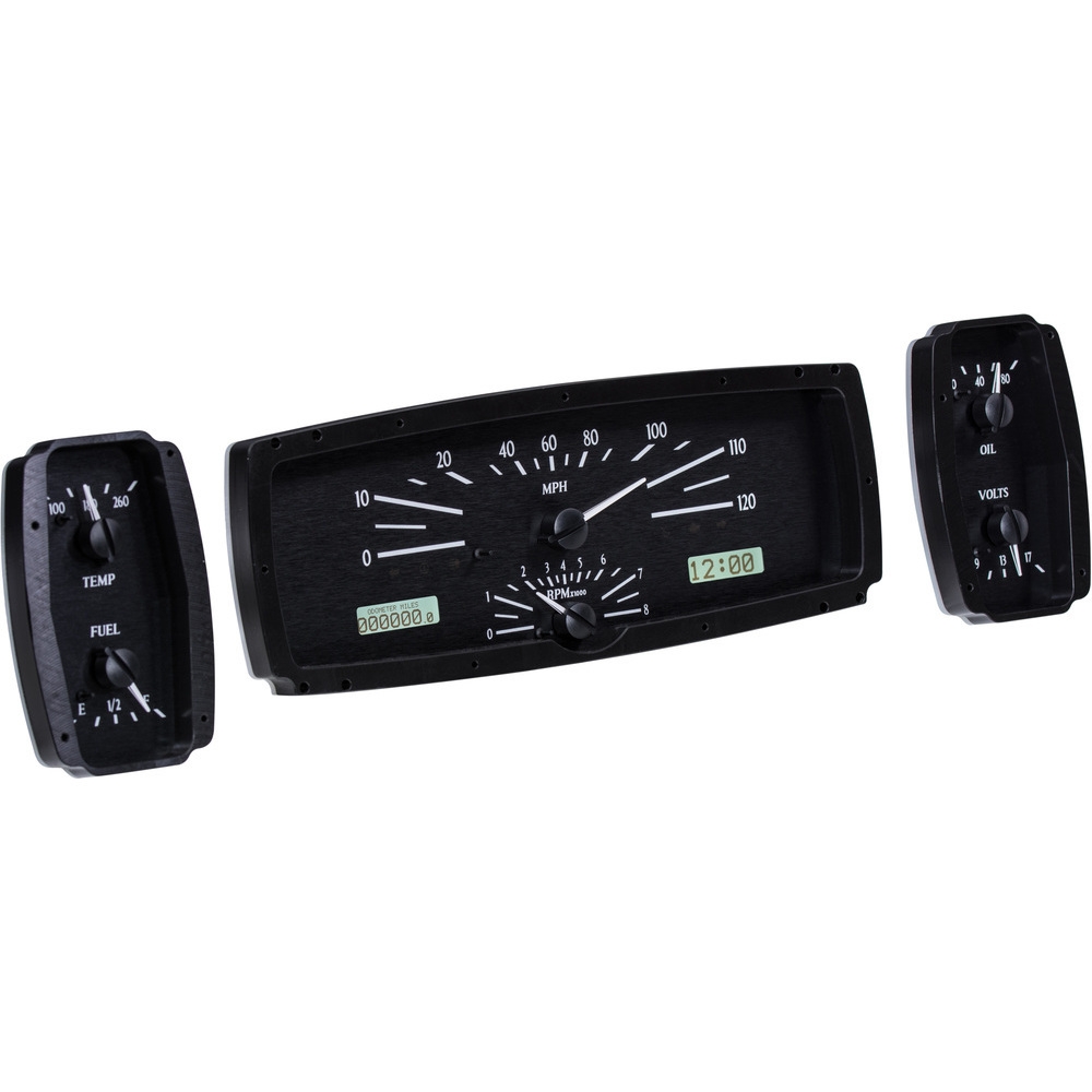 This Dakota Digital direct fit analog instrument system perfectly fills out the three rectangle gauge bezels with six needles as well as dual LCD message centers. Choose from Black or Silver Alloy face styling, and ask not what your Lincoln can do for you, but rather what you can do for your Lincoln.