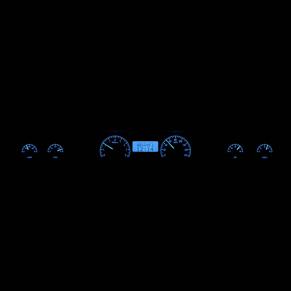 1973-77 Malibu VHX Gauge Kit - Silver Alloy/Blue