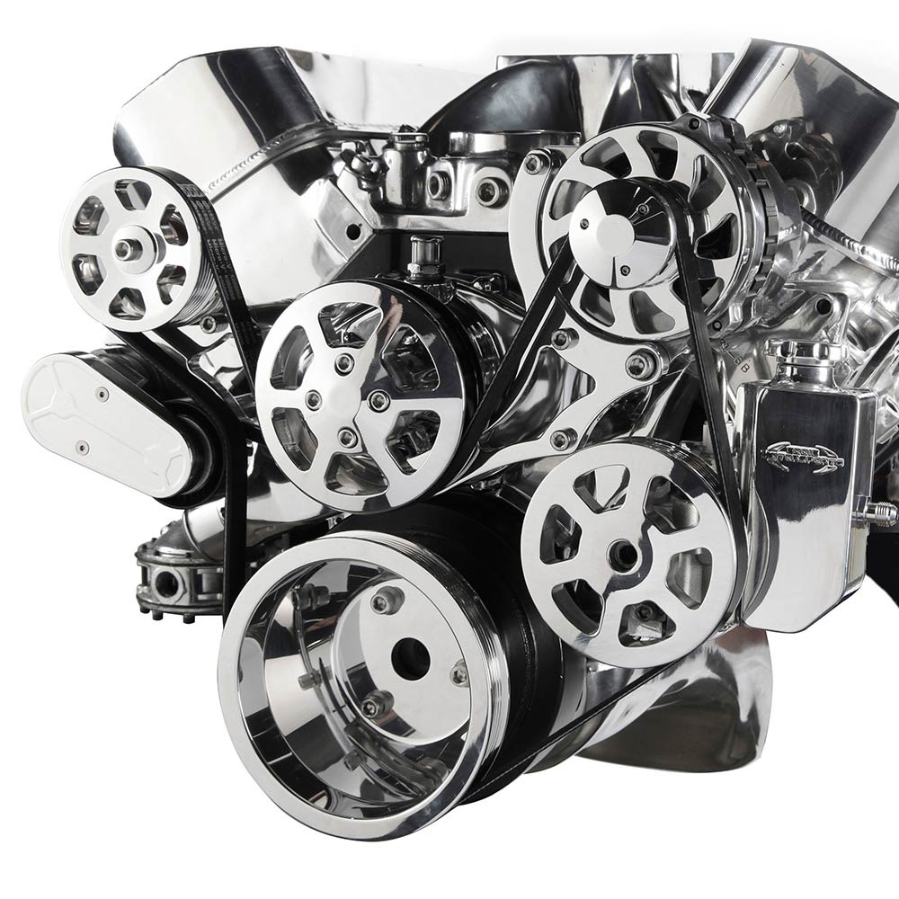 SBC 8-Rib S-Drive Serp Kit w/o A/C w/Billet Res - Polished