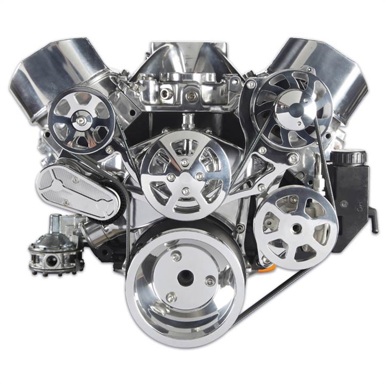 SBC 8-Rib S-Drive Serp Kit wo A/C w/Plastic Res - Clear Anod