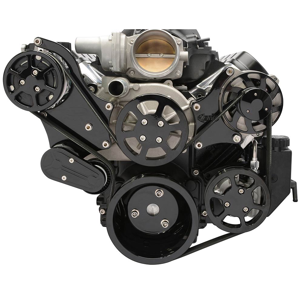 LS Chevy 8-Rib S-Drive Serp Kit wo AC w/Billet Res Gloss Blk