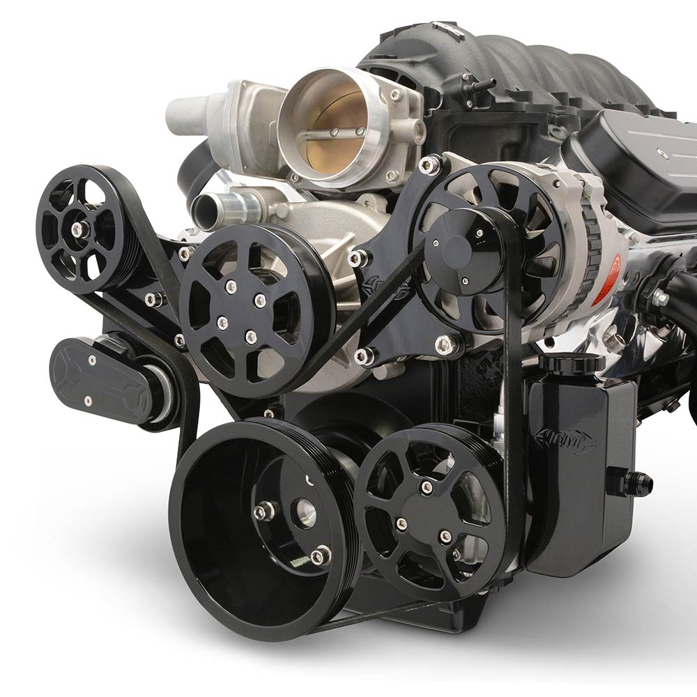 LS 8-Rib S-Drive Serp Kit w/o A/C w/Billet Res - Gloss Black