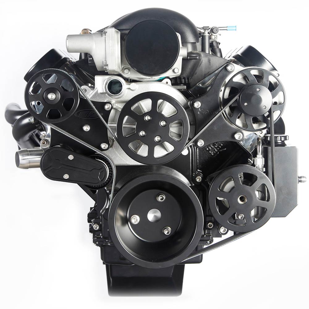 LS 8-Rib S-Drive Serp Kit w/o A/C w/Billet Res - Matte Black