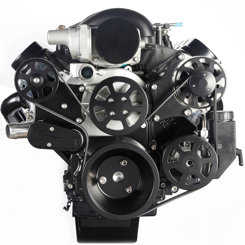 LS 8-Rib S-Drive Serp Kit wo A/C w/Plastic Res - Matte Black