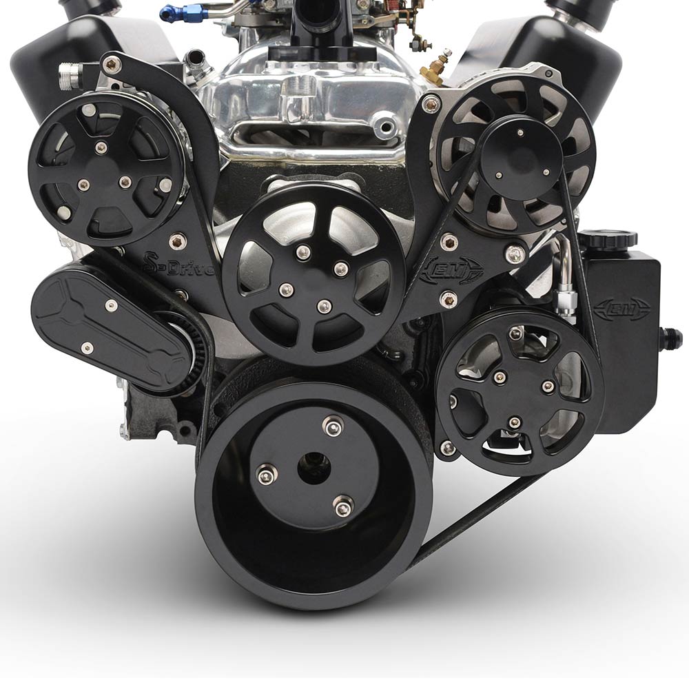 BB Chevy Serpentine Pulley Kit w/Billet PS Res - Matte Black