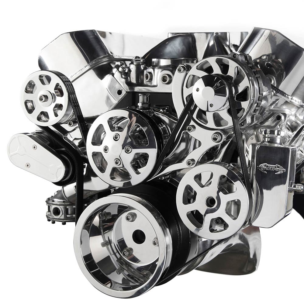 BB Chevy S-Drive Serp Kit w/o A/C with Billet Res - Polished