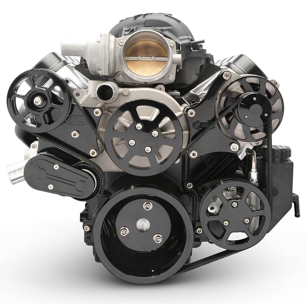 LS Chevy S-Drive Serp Kit w/o A/C w/Plastic Res - Black Anod