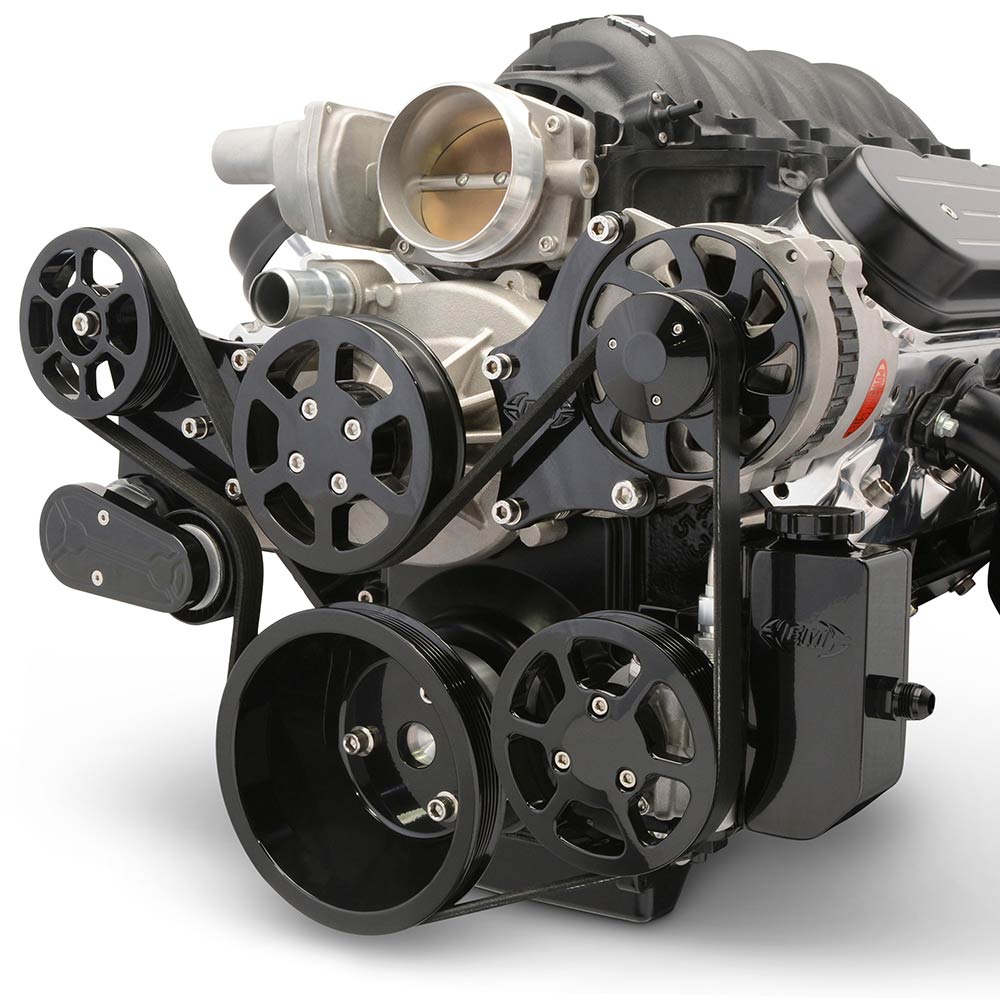 LS Chevy S-Drive Serp Kit w/o A/C w/Billet Res - Black Anod