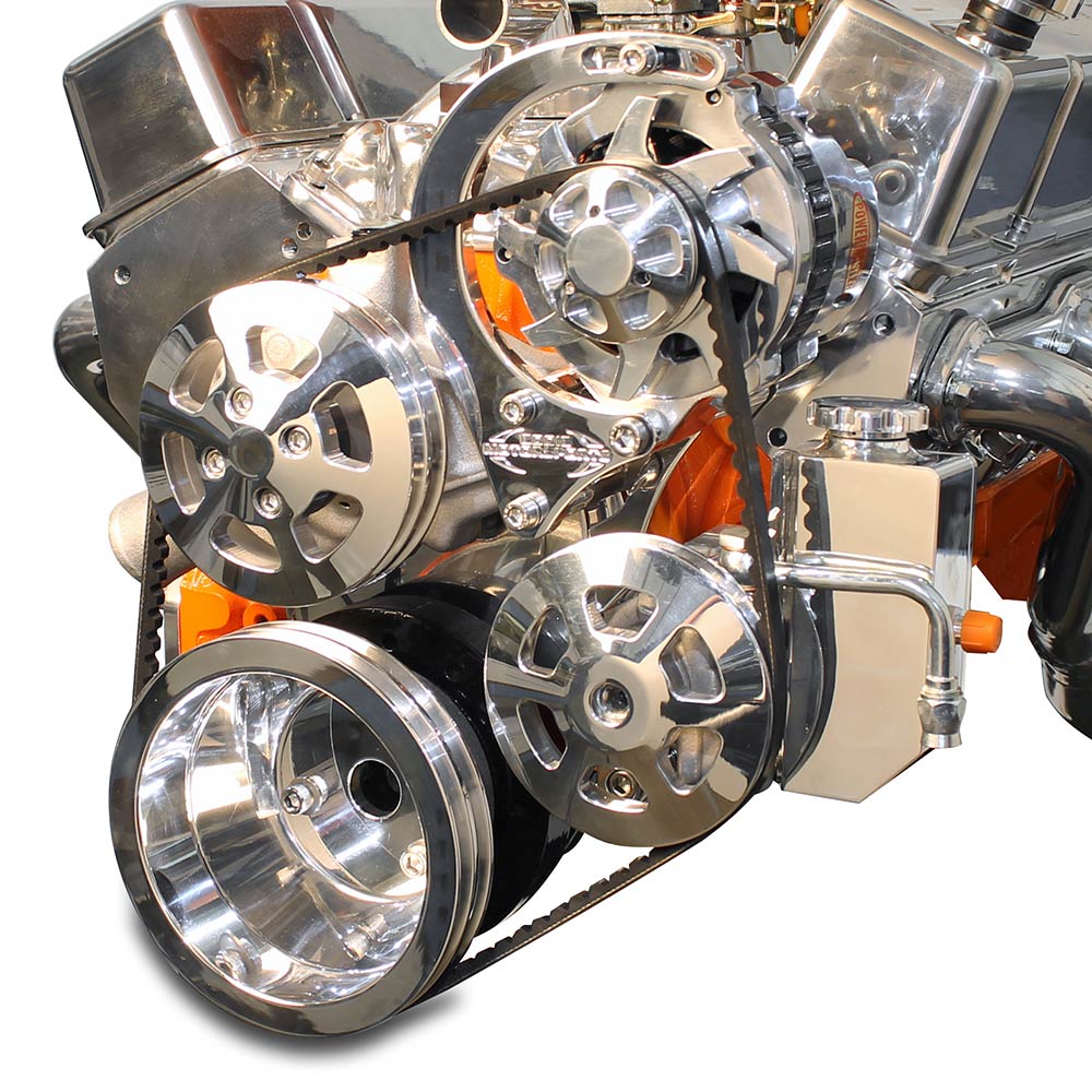 SB Chevy V-Drive Pulley Kit w/o A/C w/Billet Res - Polished