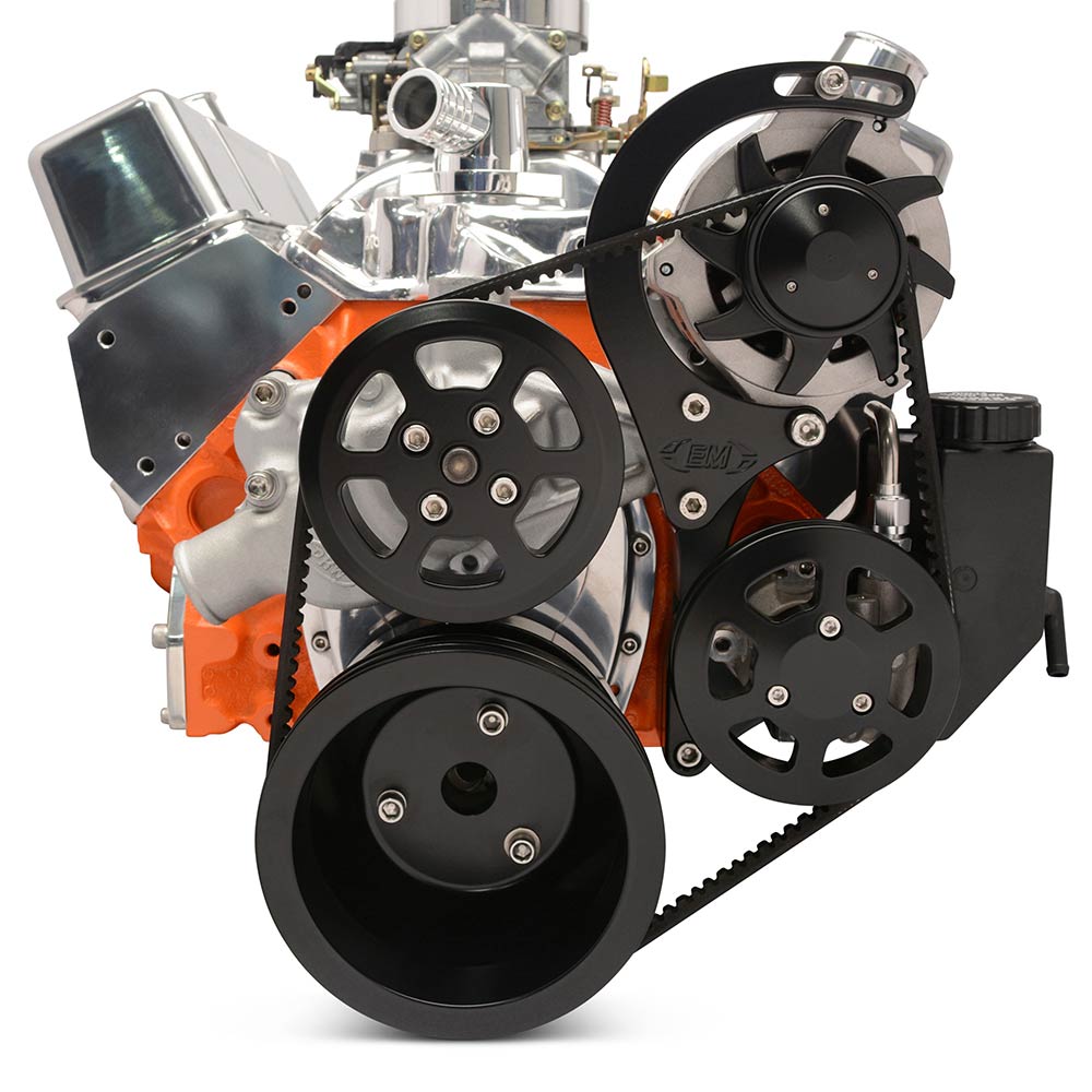 SB Chevy V-Drive Pulley Kit wo A/C w/Plastic Res - Matte Blk