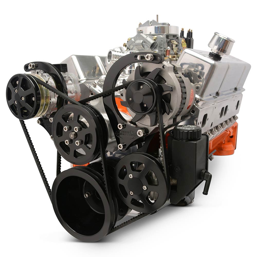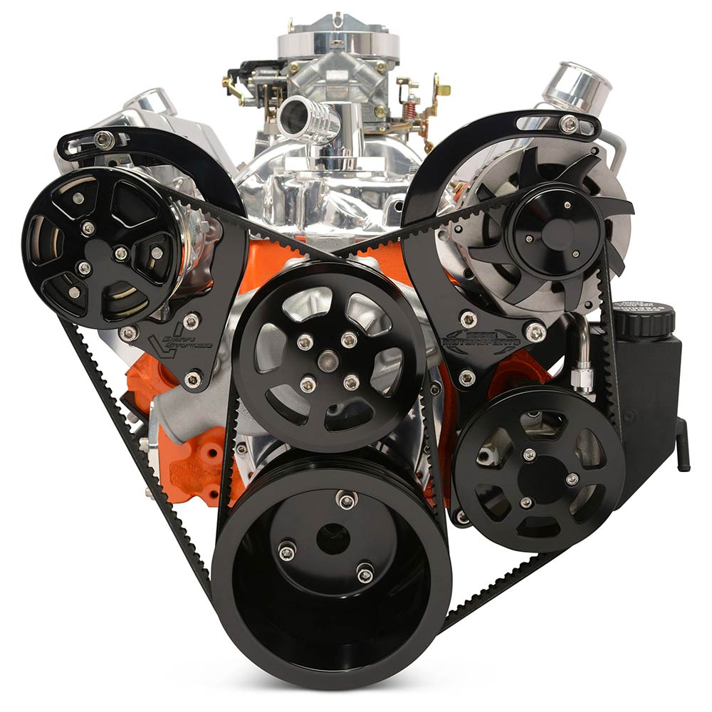 BB Chevy V-Drive Pulley Kit w/Plastic P/S Res - Black Anod