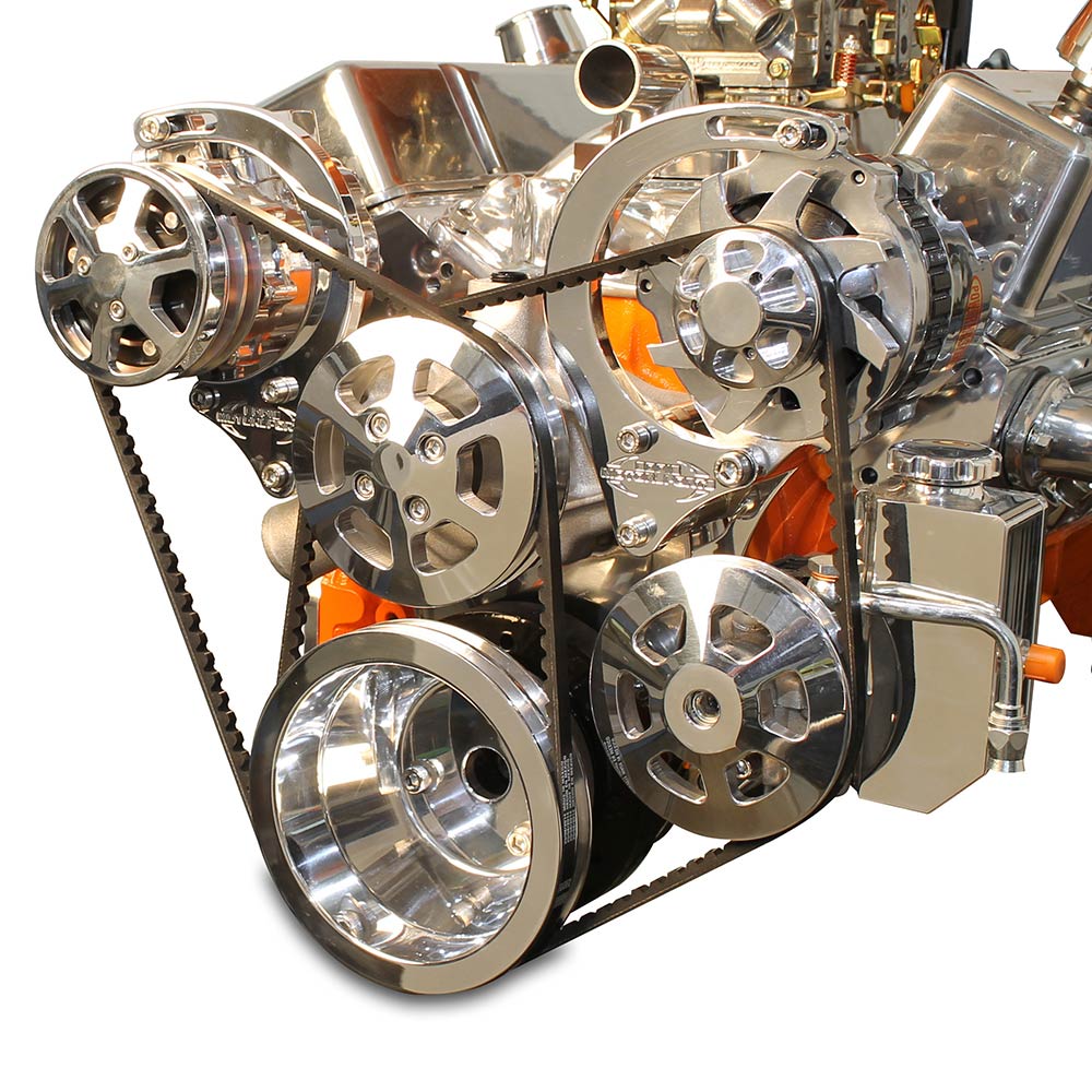 BB Chevy V-Drive Pulley Kit w/Billet P/S Res - Polished