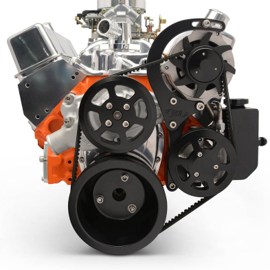 BB Chevy V-Drive Kit w/o A/C w/Billet P/S Res - Matte Black
