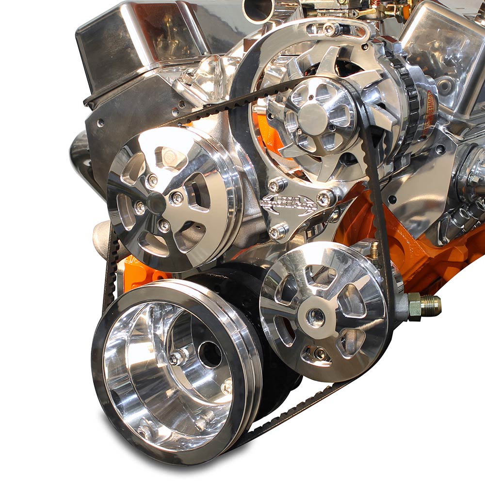 BB Chevy V-Drive Kit w/o A/C for Remote P/S Res - Polished