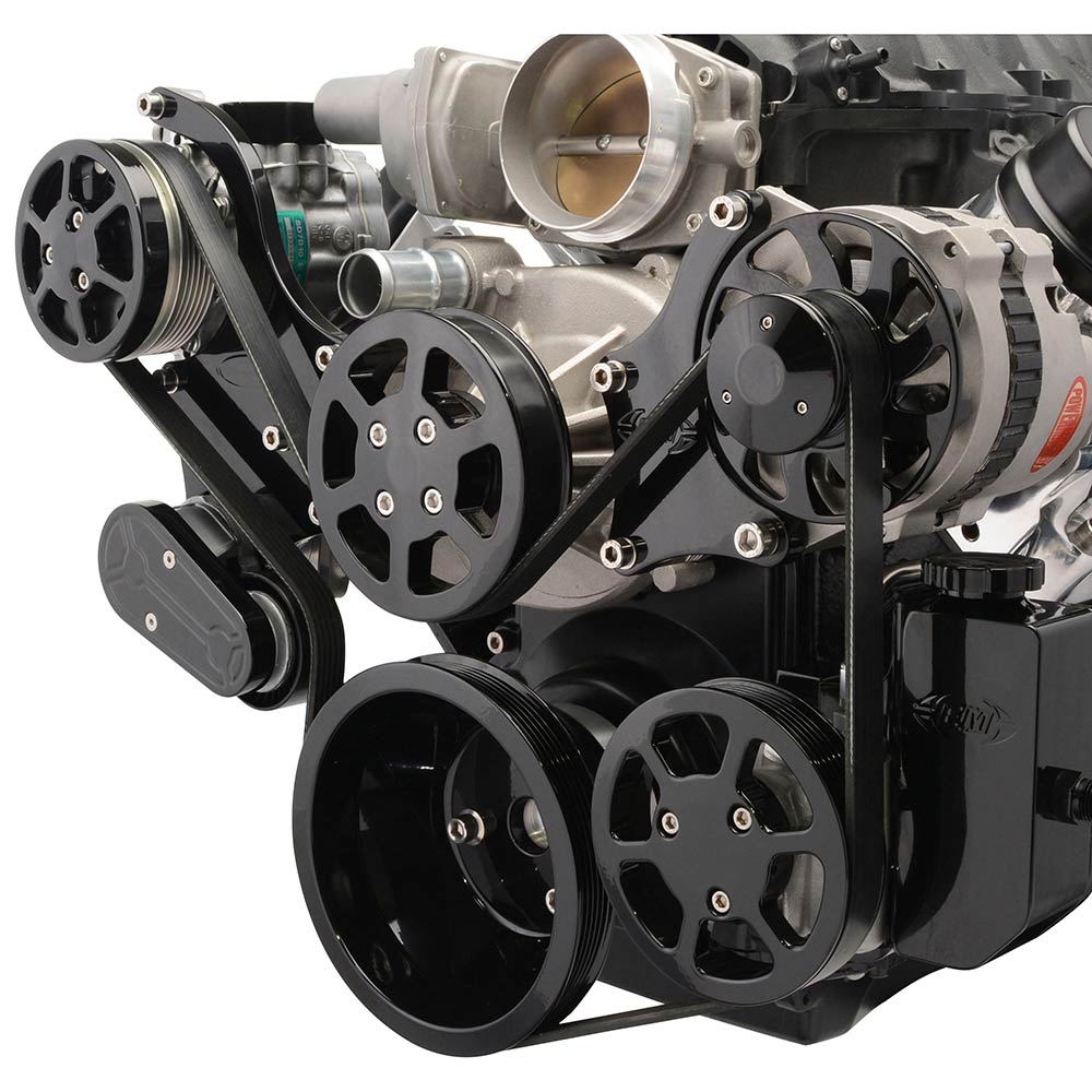Chevy LS S-Drive Serp Pulley Kit w/Billet PS Res - Gloss Blk