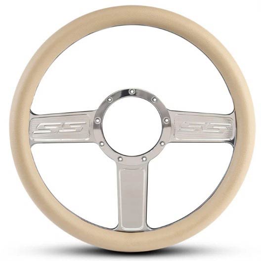 1/2 Wrap SS Logo 13.5" Steering Wheel - Tan Grip Highlighted