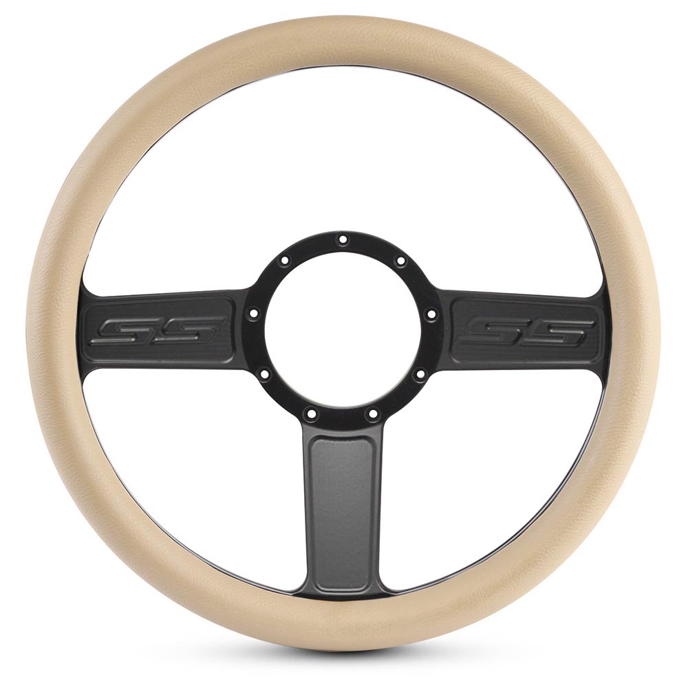1/2 Wrap SS Logo 13.5" Steering Wheel - Tan Grip Matte Black