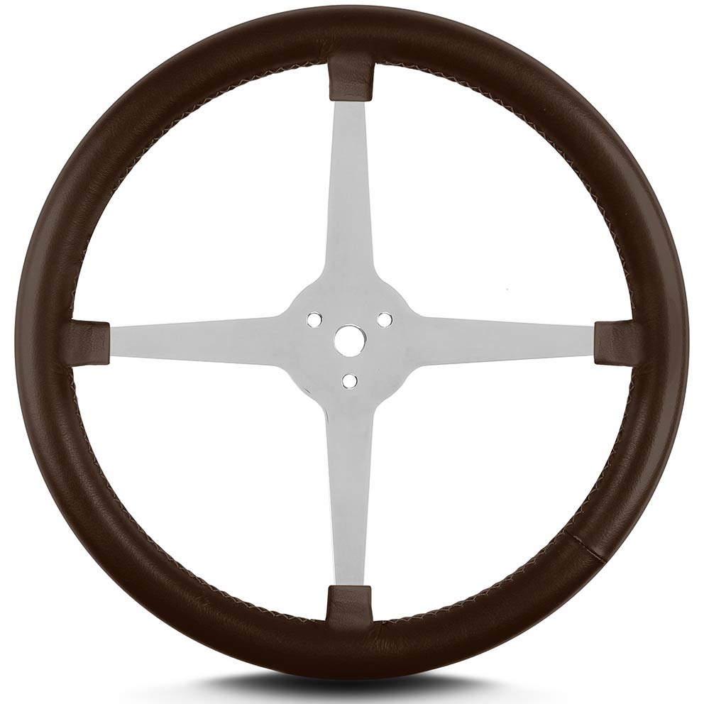 Lake Style 14" Polished 4 Spoke 14" Steering Wheel - Brown