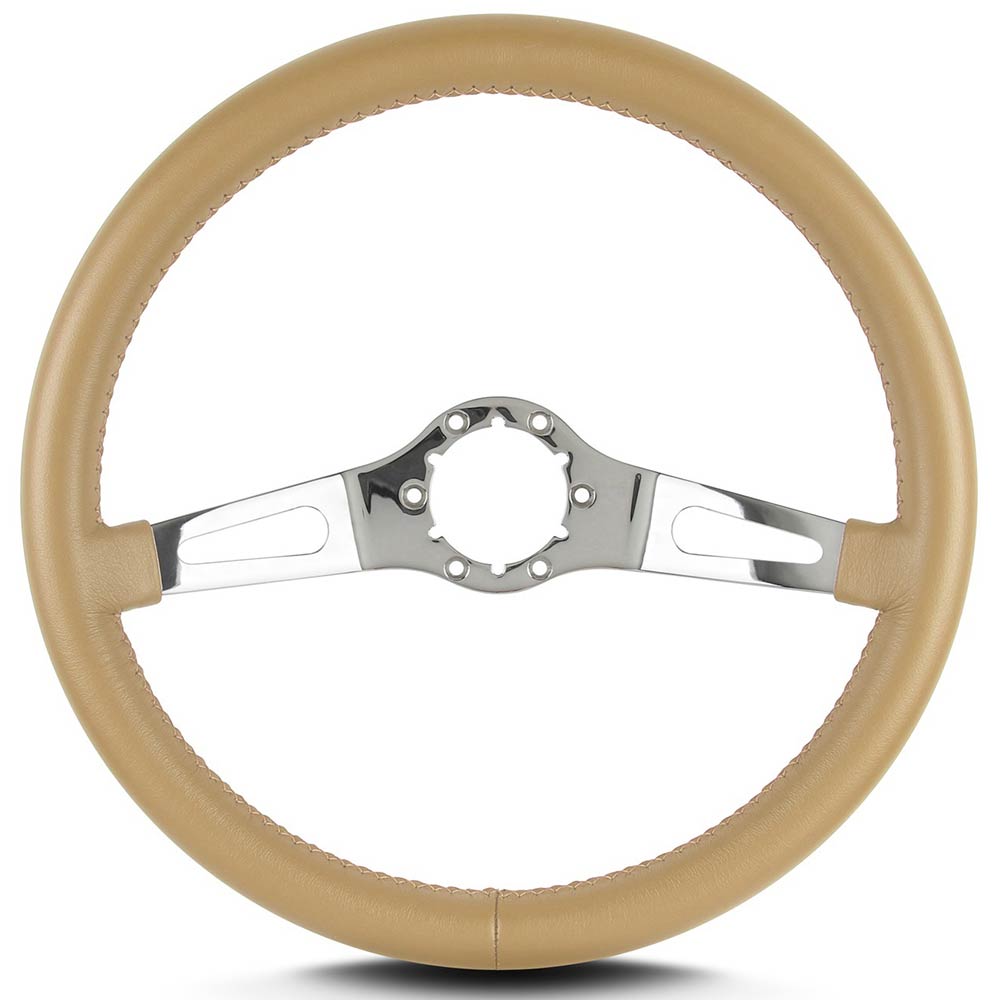 Teardrop 2 Spoke 14" Polish Steering Wheel Std Grip - Tan