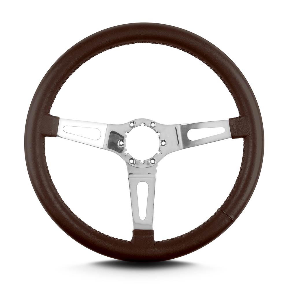 Teardrop 3 Spoke 14" Polish Steering Wheel Std Grip -Brown