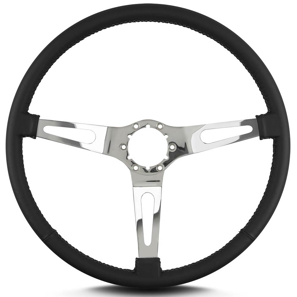Teardrop 3 Spoke 15" Polish Steering Wheel Thin Grip - Black