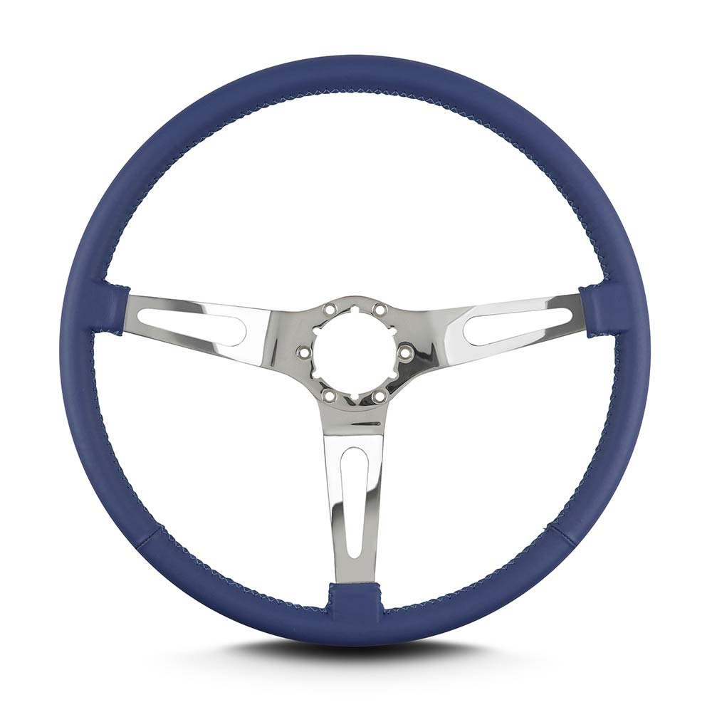 Teardrop 3 Spoke 15" Polish Steering Wheel Thin Grip - Blue