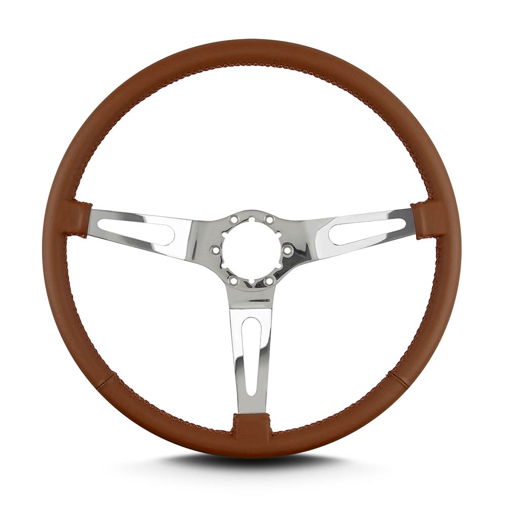 Teardrop 3 Spoke 15" Polish Steering Wheel Thin Grip Caramel