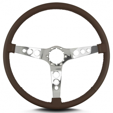 Vette Hot Rod 15" Pol Spoke Thin Grip Steering Wheel - Brown