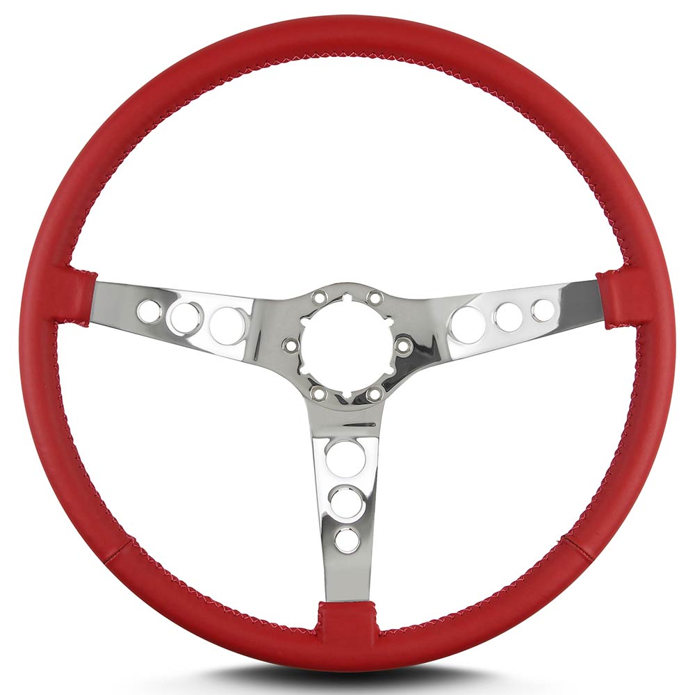 Vette Hot Rod 15" Pol Spoke Thin Grip Steering Wheel Brt Red