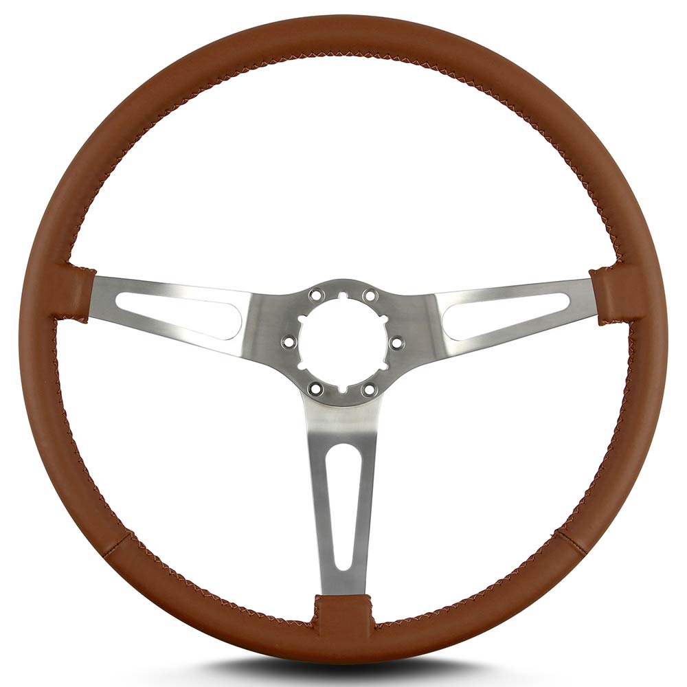 Teardrop 3 Spoke 15" Satin Steering Wheel Thin Grip- Caramel