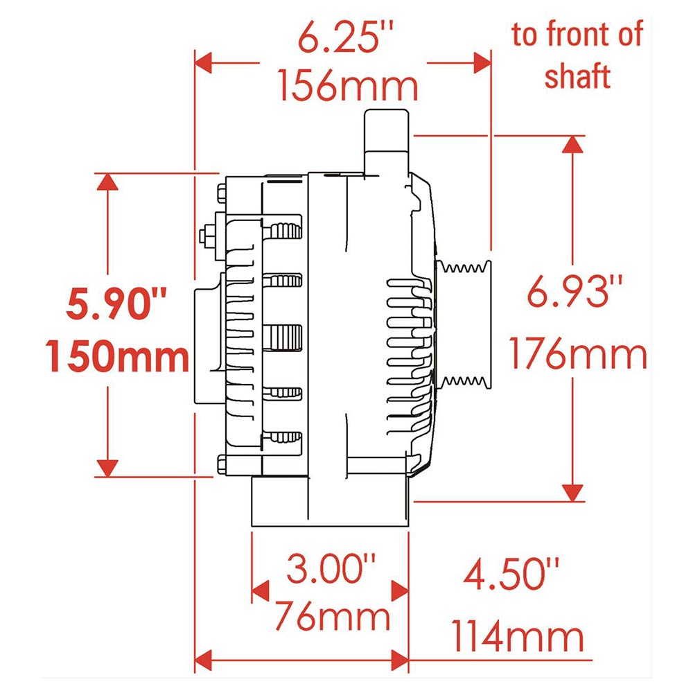 Ford 3G Polished 6-Gr Serp 200A Str Mt 1-Wire Alternator