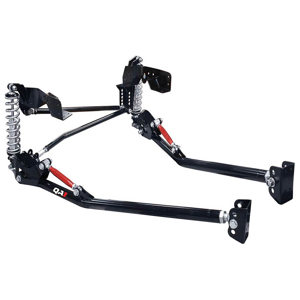 QA1's C10 bolt-on rear suspension system is designed to convert trucks originally equipped with a coil-spring rear suspension to coil-overs. This system offers up to 6" of total drop and integrates adjustability into multiple areas so you can truly fine-tune the geometry to create the perfect performance after lowering. By converting the coil-spring rear suspension to adjustable coil-overs, the ride height for each corner can be altered for that perfect stance. From there, the tubular steel truck arms feature an integrated pinion angle adjustment, eliminating the need for angled shims and allowing the wheelbase to be set to exact specifications. The adjustable panhard bar keeps the rear centered for more predictable cornering, and the multiple mounting locations correct roll center geometry based on the amount of drop. The coil-overs are also relocated to the outside of the frame rail, closer to the wheel, for better cornering stability and allowing room for popular aftermarket rear-mounted fuel tanks. In addition to being easily bolted on, the entire rear system can be installed without needing to remove the bed of the truck.