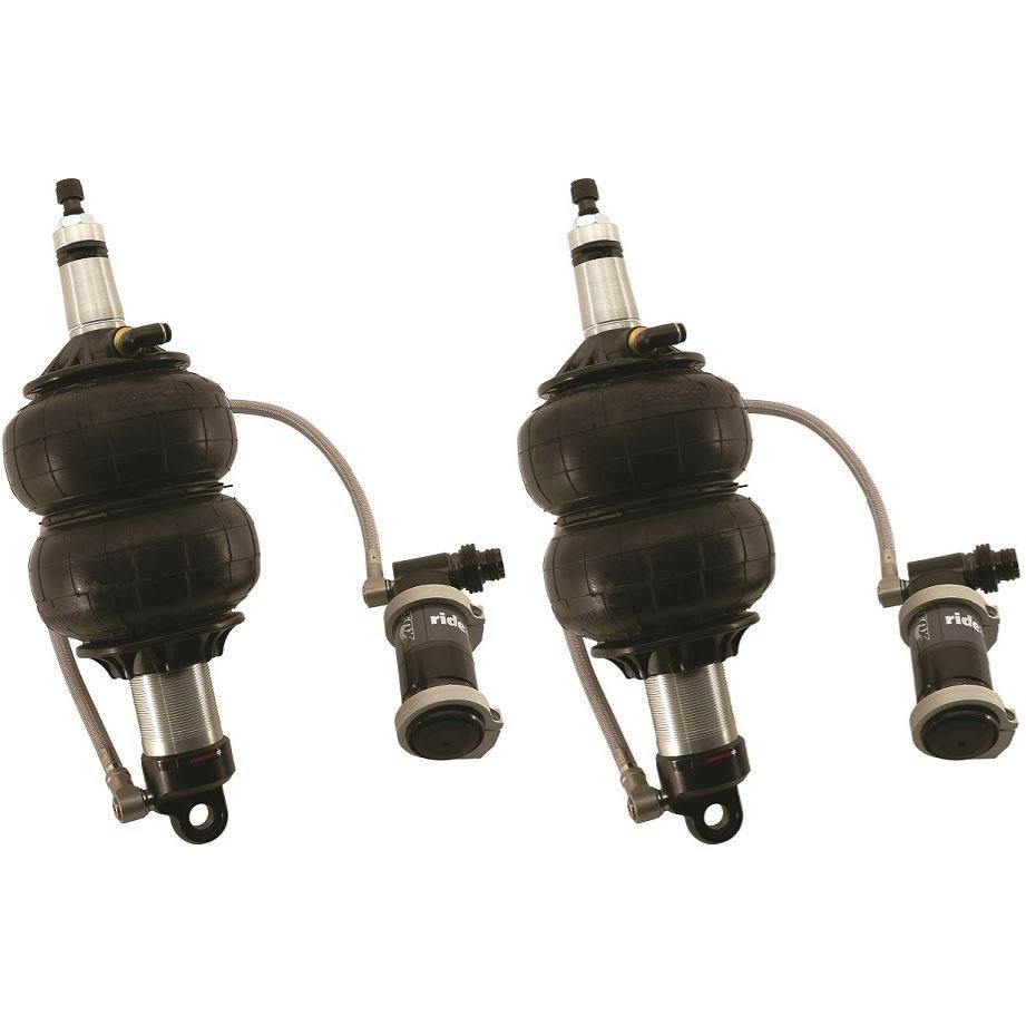 TQ Series ShockWaves mount in your 1955-57 Chevy just like CoilOvers and deliver great ride quality, handling with adjustable air ride stance. RideTech's patented, integral shock within a spring air spring and shock absorber assembly is a proven winner at shows and in motion. Triple adjustable TQ Series shock absorbers feature single rebound adjustment plus dual high and low speed compression adjustment. You can fine tune the settings to your exact vehicle specs and driving style. TQ Series ShockWaves feature remote mount reservoirs for consistent fluid temps, plus easier access to the two compression tuning knobs. Advanced technology hides within the shocks. The monotube design Features large 1.834" pistons, heavy duty 5/8" shafts and impact forged bodies. Since TQ Series ShockWaves are built to perform and made to last, they are backed by RideTech's exclusive1,000,001 mile warranty. They understand your muscle car's suspension as well as any other company. Shock calibrations and air spring specs are based on more than 20 years of extensive air ride development on the street, highways and race tracks. It all adds up to predictable handling that is comparable to CoilOvers but with instant ride height adjustment. Your Tri-Five Bel Air, 210 or 150 gets the best of both worlds. This kit includes two triple adjustable TQ Series ShockWaves with remote reservoirs.
