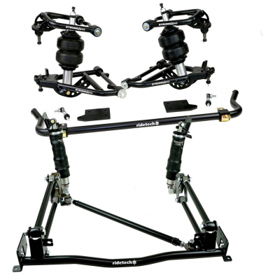 The RideTech Air Suspension package includes everything you need to get that ultra low show stance while providing excellent ride quality and handling. The package contains front upper and lower control-arms, front MuscleBar, a rear 4-Link and 4 HQ Series ShockWaves. The benefit of buying a complete suspension system is that it takes all of the guesswork out when purchasing a new suspension. RideTech has spent hours collecting data to find a perfect spring rate and components for your vehicle’s performance and ride quality.