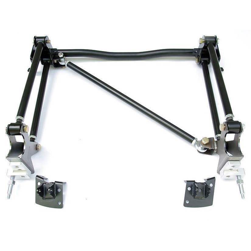 After driving a new Camaro or Mustang, the compromises of a standard leaf spring suspension just doesn’t cut it! Now there is a solution. This RideTech 4-Link System is specifically designed for use with ShockWaves or CoilOvers. The ride height of your car is typically lowered by approximately 2". The ride quality is dramatically improved over stock. The area of largest improvement is the handling and cornering performance. The system eliminates the OEM leaf spring and replaces them with a 4-Link rear suspension. The 4-Link bars offer more precise positioning of the rear axle to eliminate flexing and increase stability through the corners. When combined with a ShockWave or a Ridetech CoilOver front suspension kit your classic muscle car can now enjoy the benefits of modern handling and ride quality technology. The bars are positioned to the inside of the frame rails to provide maximum tire clearance. The installation is virually bolt on requiring only two brackets be welded to the axle tube. The R-Joint rod ends combine the best qualities of low friction movement, lateral stability, full range articulation and quiet operation into one special bearing that is as home on the street as it is on the racetrack! If you want your classic muscle car to ride and drive like a modern performance car, the Bolt-On 4-Link system is the perfect solution! RideTech uses their cars in a wide range of performance driving environments, as well as plain old highway time. Their 4-Link systems have proven time and time again to provide not only ground shaking traction, but a great highway ride as well.