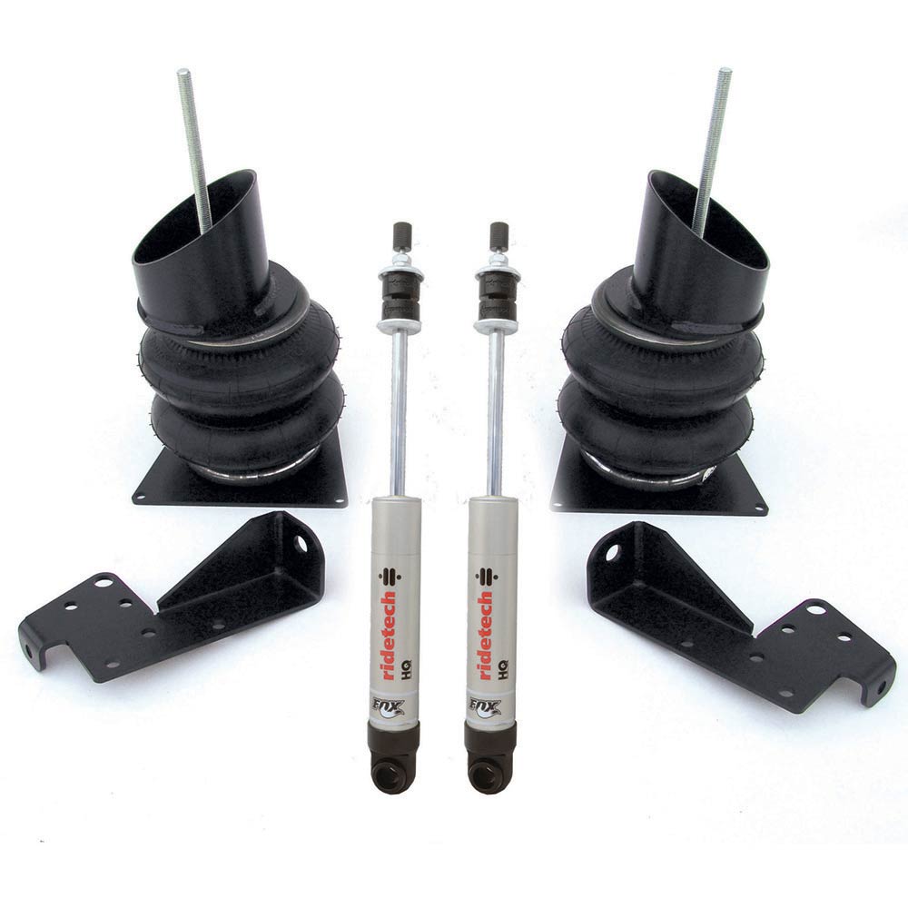Front CoolRide kit for 1958-64 Impala B-Body. For use w/ RideTech lower arms. Includes air springs, brackets, HQ Series shocks, bolt on shock mounts and hardware.