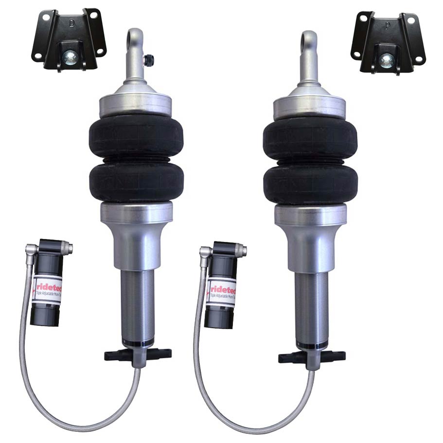 RideTech offers these patented ShockWave air suspension solution, mounts in your Fourth Gen Camaro and Firebird just like a CoilOver delivering exceptional ride quality, handling and stance. The air spring replaces the coil-spring for adjustable ride height while the integral, triple adjustable TQ Series shock absorber can be fine-tuned to your exact vehicle specs and driving style. Triple Tuning capability combines single rebound adjustment with dual and high and low speed and compression adjustment. Remote reservoirs provide consistent fluid temps in all environments, as well as easier access to the two compression tuning knobs. The ultimate TQ Series monotube shocks are paired with the ultimate air springs. For more than 20 years, RideTech has worked tirelessly to develop the correct air spring volume and specs for each application including your F-body. Get slammed show car stance with maximum handling and world class ride quality with TQ Series ShockWaves.