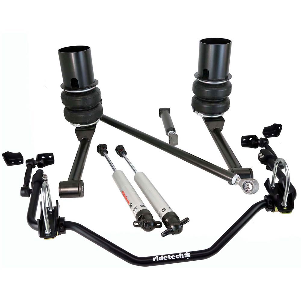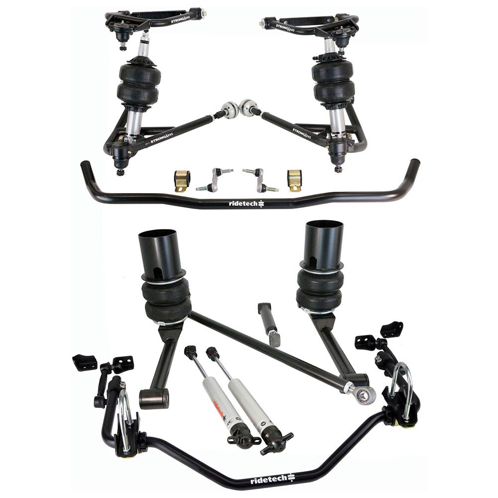 The RideTech Air Suspension package includes everything you need to get that ultra low show stance while providing excellent ride quality and handling. The package contains front upper and lower control-arms, front MuscleBar, a rear 4-Link and 4 HQ Series ShockWaves. The benefit of buying a complete suspension system is that it takes all of the guesswork out when purchasing a new suspension. RideTech has spent hours collecting data to find a perfect spring rate and components for your vehicles performance and ride quality.
