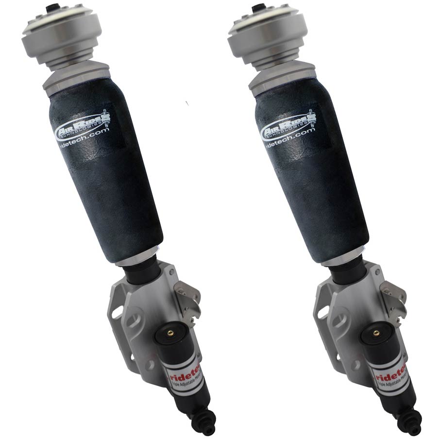 RideTech offer these shocks for your 2010-15 Camaro with TQ Series ShockWave Air Struts for track ready handling, instant ride height adjustment and bolt-on installation. This 3 way adjustment provides precise tuning capability. Piggyback reservoirs provide consistent fluid temps in all environments, as well as easy access to compression tuning knobs. The TQ or Track Quality Series Struts provide single rebound adjustment combined with dual stage high speed and low speed and compression adjustment. The high speed adjustment feature allows tuning of instances that might induce a high speed excursion of the piston rod. This includes rapid changes in suspension loading such as quick directional transitions in autocross competition. The high speed adjustment also allows fine tuning for impact harshness typically found during street driving such as potholes, speed bumps and other road problems. Low speed adjustment allows tuning of ride quality, as well as the general cornering characteristics of typical road course and winding road cornering use. The TQ Series Struts are the ultimate choice for autocross, track days, drag racing and ultra high performance street use.