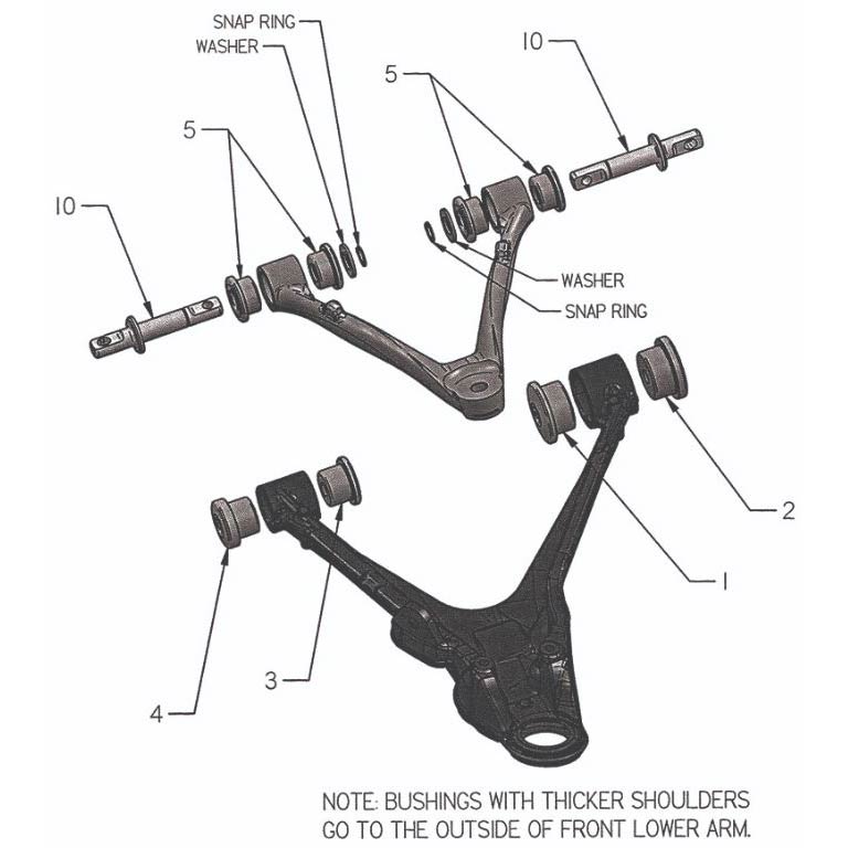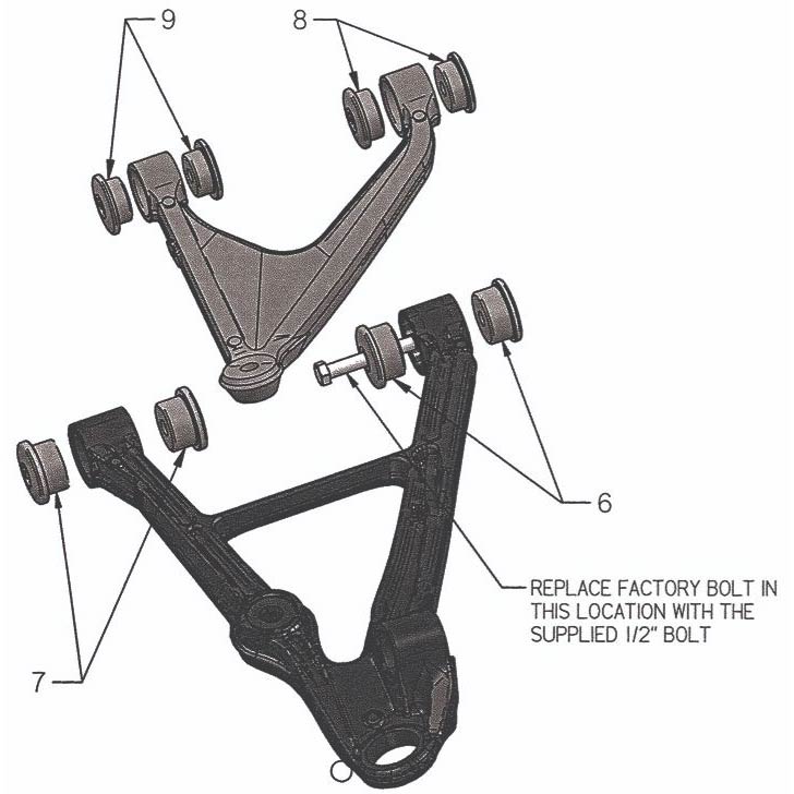 - Replaces all 16 control arm bushings.