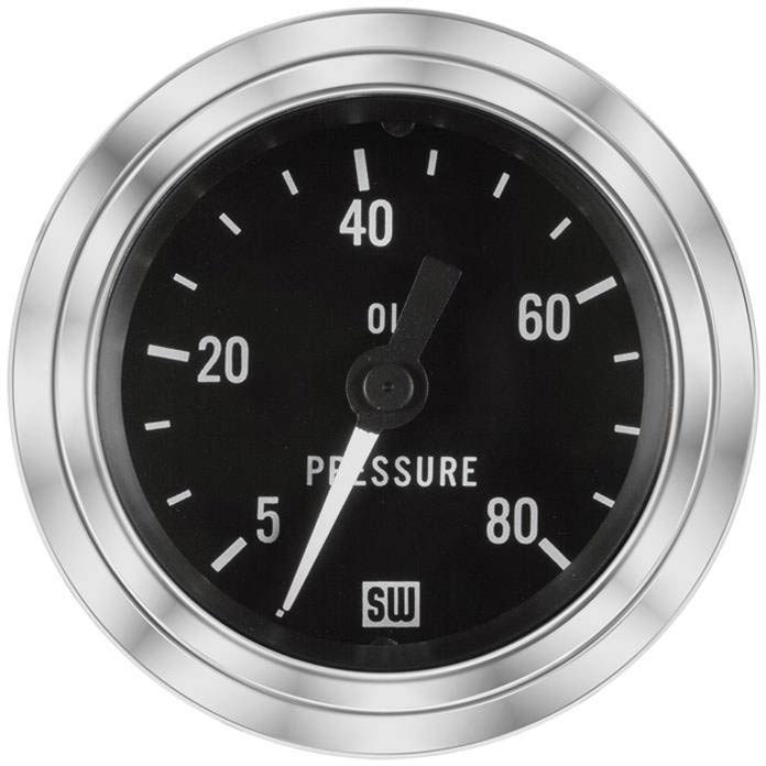 Deluxe Series Black Face 0-80 PSI Oil Pressure Ga - 2-1/16"