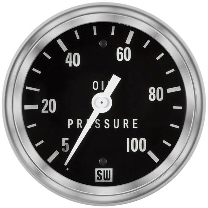 Deluxe Series Black Face 0-100 PSI Oil Pressure Ga - 2-5/8"