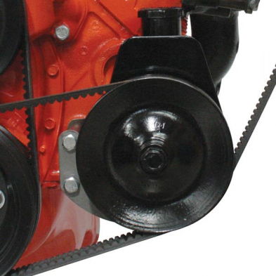 Small Block Low-Mount Power Steering Bracket Long Pump*. Requires double-groove power steering pump pulley.(* Will not work on Chevelles '70 and later Camaros or '76 and later Novas)