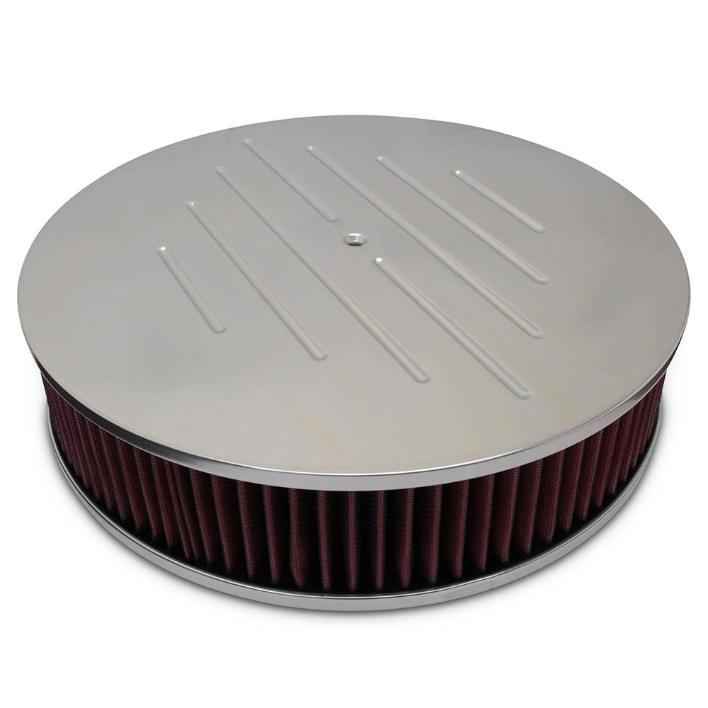 Round Ball Milled Top 14" Air Cleaner - Clear Anodized