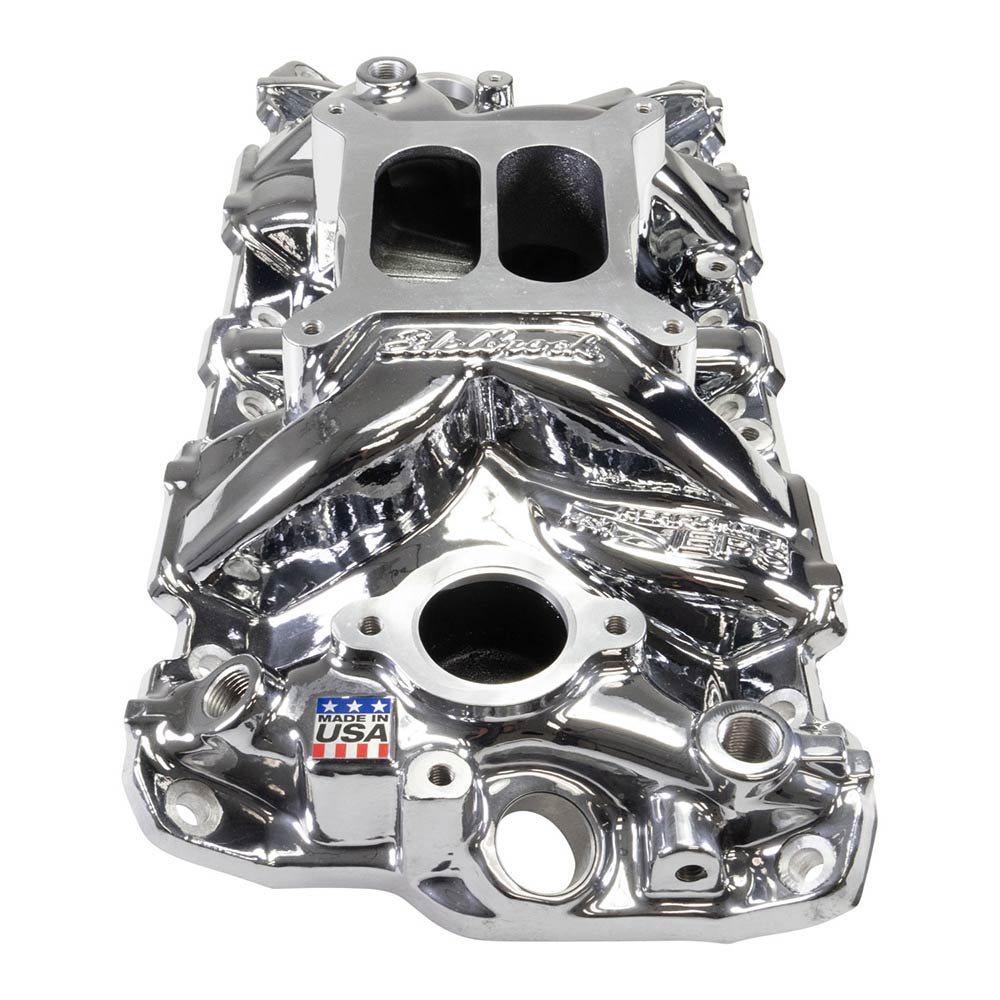 1955-86 SBC Chr Coated Perf EPS Intake Manifold Frt Oil Fill