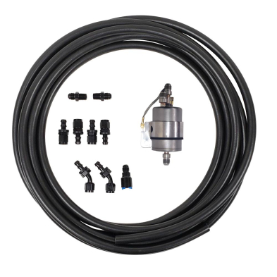 This fuel line kit includes 25 feet of line and all the fittings that you need for your LS engine swap using our fuel pumps.  This kit is designed for LS engines that have a single fuel inlet fitting.  The regulator in this kit is not recommended with fuel pumps that flow over 255 LPH.