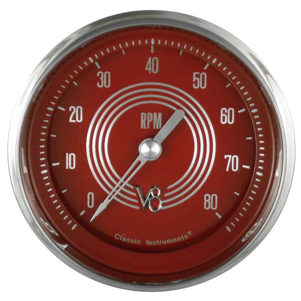 V8 Red Steelie 3-3/8" 8000 RPM Tachometer Gauge - SHC