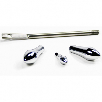 This kit includes a turn signal lever with knob and a 4-way flasher knob. The turn signal lever is flattened and attaches to the column with a single screw. The kit fits 1969 and newer GM and Chrysler columns and is available in three different knob styles: Standard, Retro, and Deco (Deco style knobs are only available in polished aluminum finish).