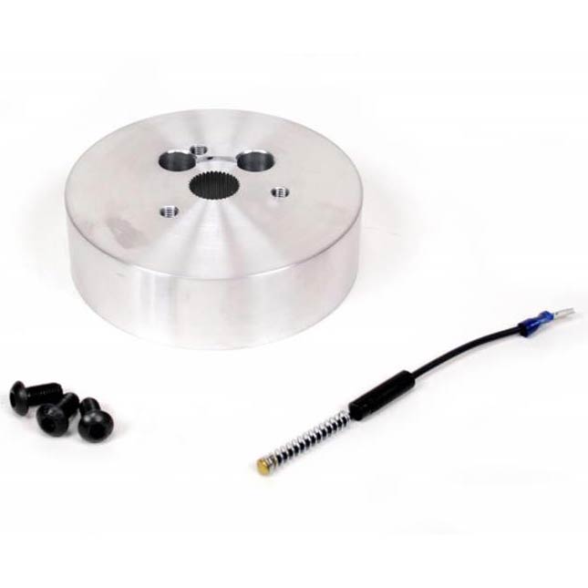 The ididit CON2R adaptor is made to adapt a CON2R 3 bolt style steering wheel to the tapered, splined top shaft of an ididit/GM steering column. Adaptor comes with mounting hardware and horn wire. Measures 1.125" tall.